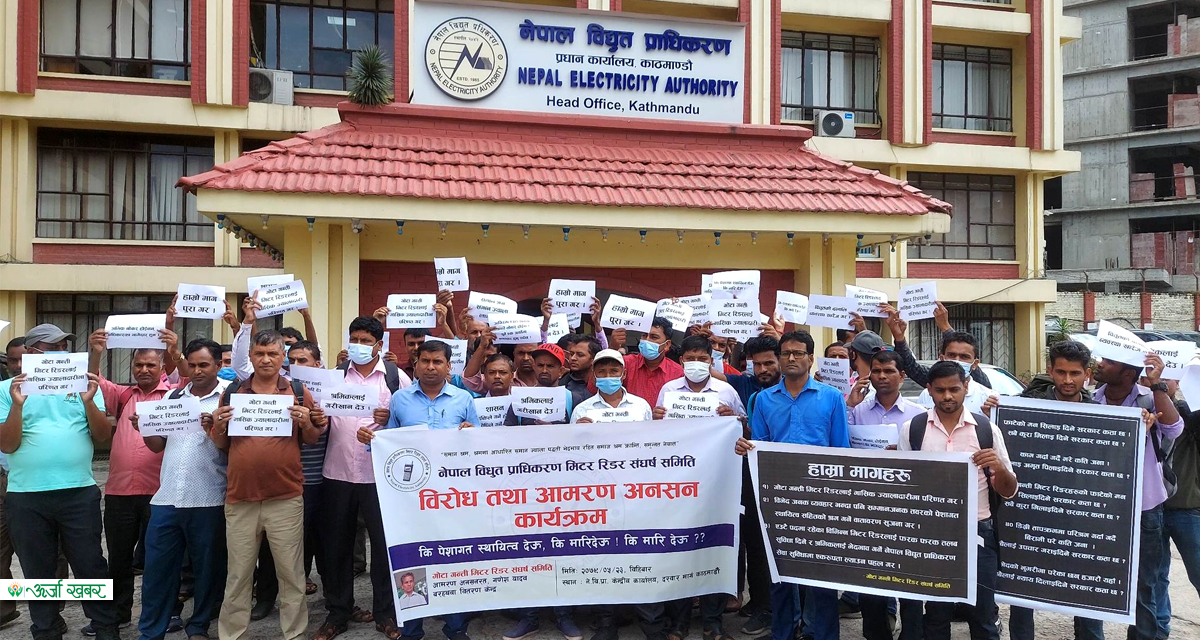 काठमाडौं । नेपाल विद्युत प्राधिकरणमा कार्यरत मिटर रिडरलाई ज्यालादारी कर्मचारी बनाउने माग पूरा नभएपछि प्राधिकरण मिटर रिडर संघर्ष समितिले आन्दोलन सुरु गरेको छ । प्राधिकरणको प्रधान कार्यालयमा आज (भदौ २३ गते) धर्ना तथा नाराबाजी गर्दै विरोध तथा आमरण अनसन कार्यक्रम सुरु गरेका हुन् ।