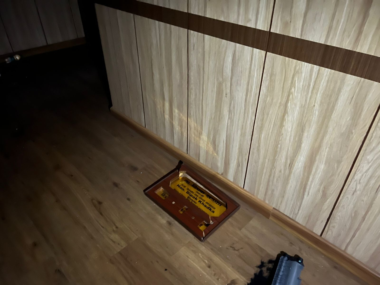 ११. ऊर्जा, जलस्रोत तथा सिँचाइ मन्त्रीको भुइँमा फालिएको नेम प्लेट ।