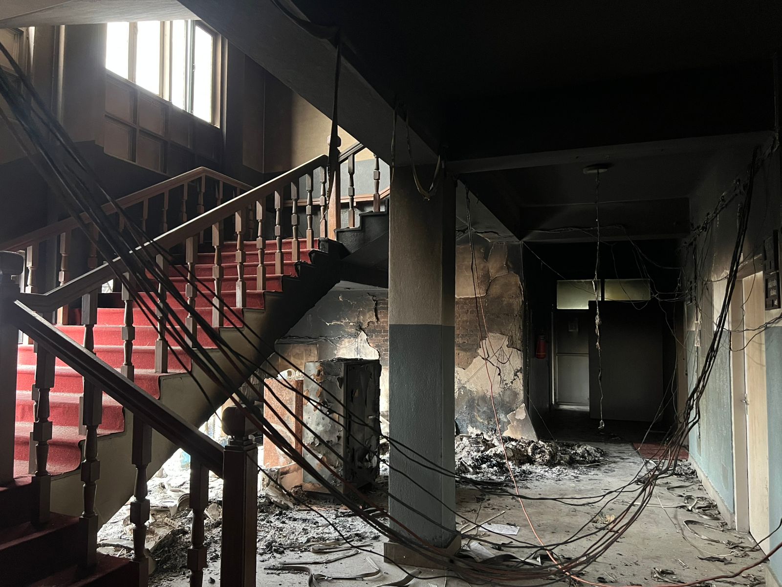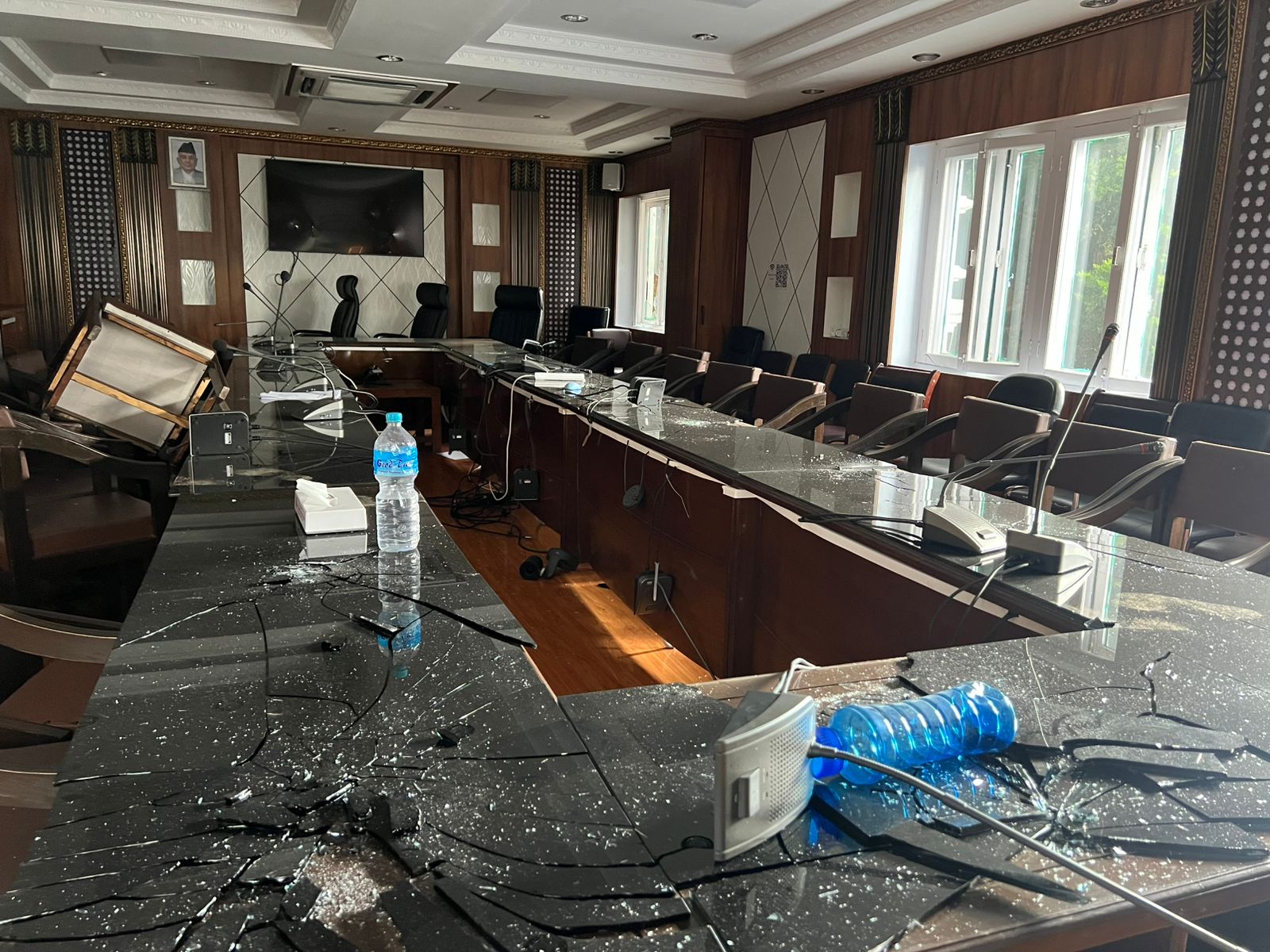 भित्री भागमा मूख्य प्रदेशद्वारपछिरेपछिको भुइँ तलामा आगेले धेरै सामान नष्ट गरेको छ भने मन्त्रालयका माथिल्लो तलामा रहेको मन्त्रीको कार्यकक्ष तथा कर्मचारीको कार्यकक्ष र सभाकक्षमा तोडफोट गरिएको पाइएको छ । तोडफोडका क्रममा प्रदर्शनकारीहरूले फर्निचर, कम्प्युटर तथा ल्यापटपजस्ता उपकरणहरु समेत फुटाएको पाइएको छ ।