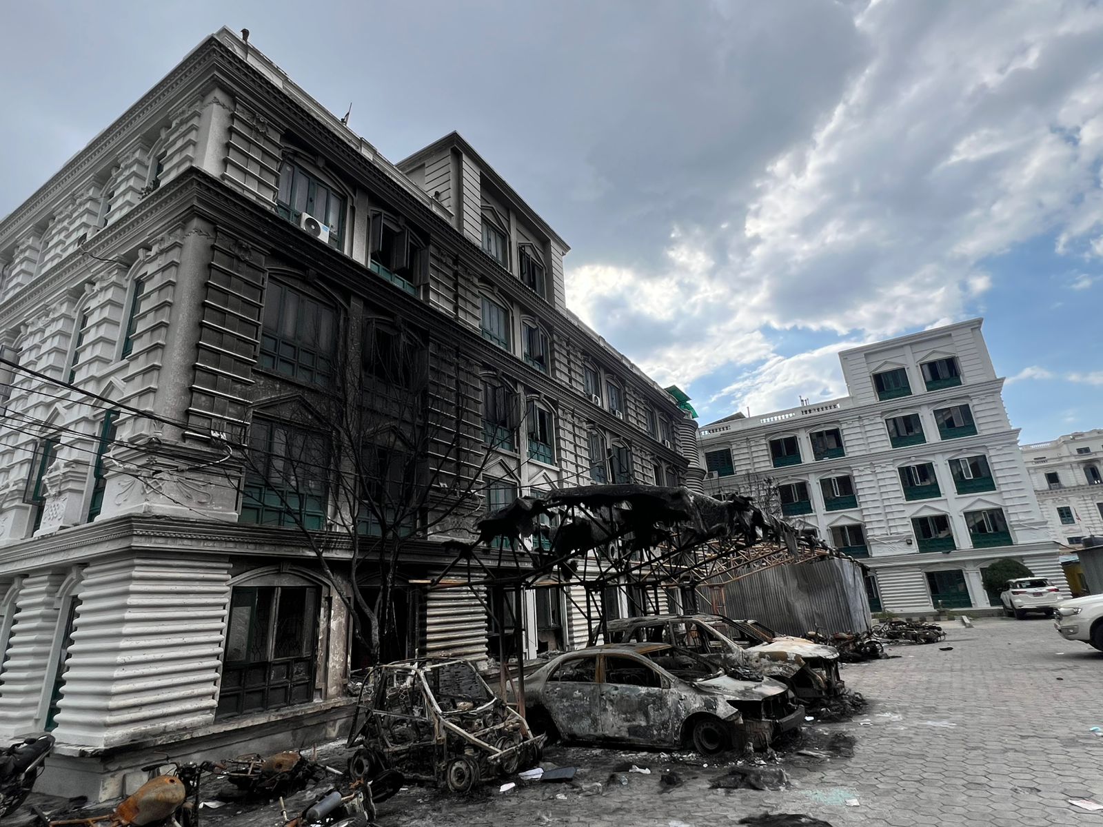 २. ऊर्जा, जलस्रोत तथा सिँचाइ मन्त्रालयको पछिल्लो भागमा जलेका जलेका सवारी साधनहरू ।