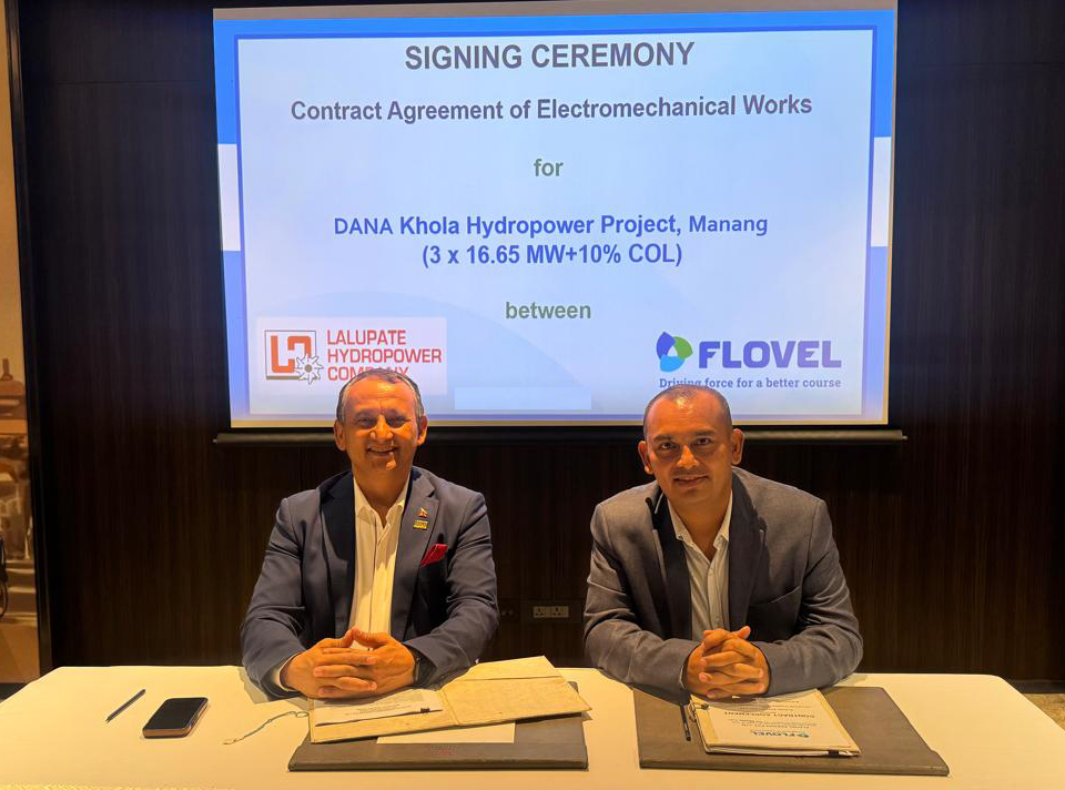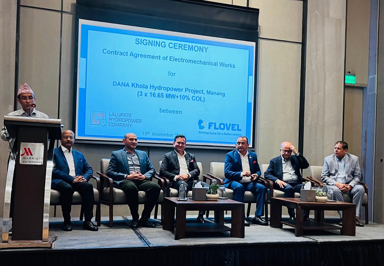Kathmandu. Lalupate Hydropower Company Pvt. Ltd., which is constructing the 83.25 MW Dana Khola Hydropower Project in Manang district, has awarded the contract for the design, manufacture, supply, and installation of electro-mechanical (EM) equipment to Flovel India Pvt. Ltd.