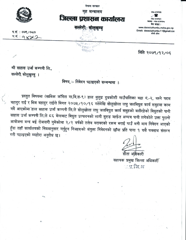साविक सञ्चालन भइरहेको लघुजलविद्युतमा उपयोग हुने पानी सोलु दूधकोसीमा प्रयोग भएपछि जिल्लाको थुलुङ दूधकोसी गाउँपालिकामा सञ्चालित लघुजलविद्युत केन्द्र बन्द भएको जिल्ला प्रशासन कार्यालय (जिप्रका), सल्लेरीले जनाएको छ । यही कारण प्रत्यक्ष अप्रत्यक्षरूपमा स्थानीयले रोजगारी गुमाएको पनि जिप्रकाले साहास ऊर्जालाई लेखेको पत्रमा उल्लेख छ ।