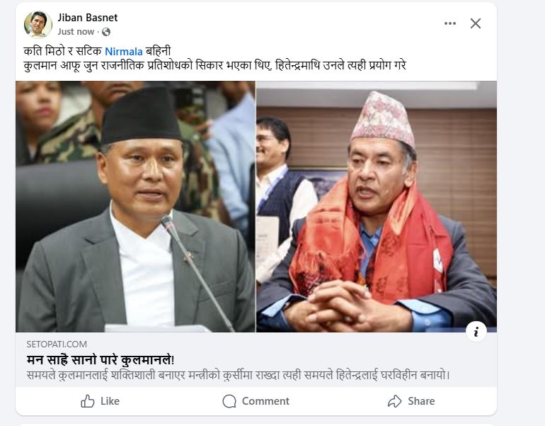 सामाजिक सञ्जालमा मन्त्री घिसिङको बढ्दो आलोचना
