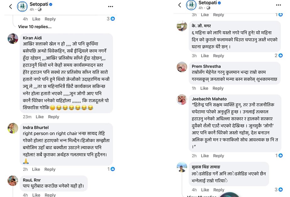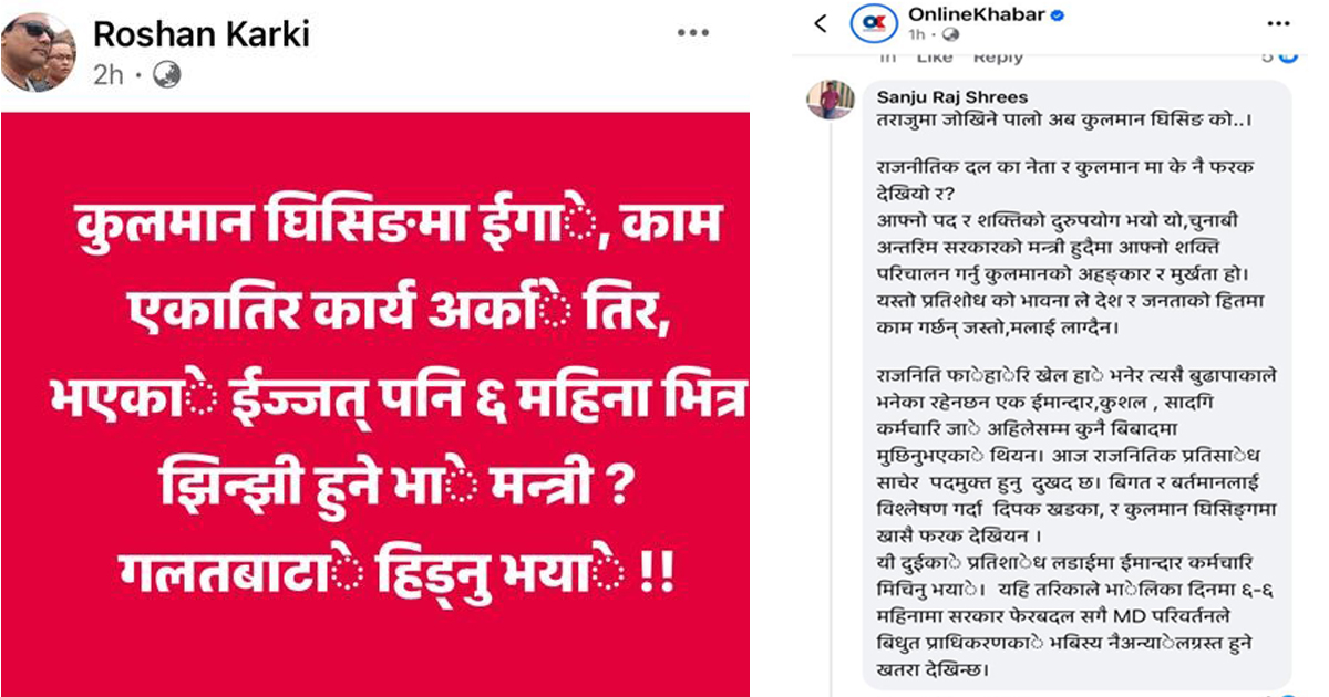 मन्त्री घिसिङको निर्णय र शाक्यको बहिर्गमनका सन्दर्भमा सामाजिक सञ्जालमा आएका अन्य प्रतिक्रियाहरू