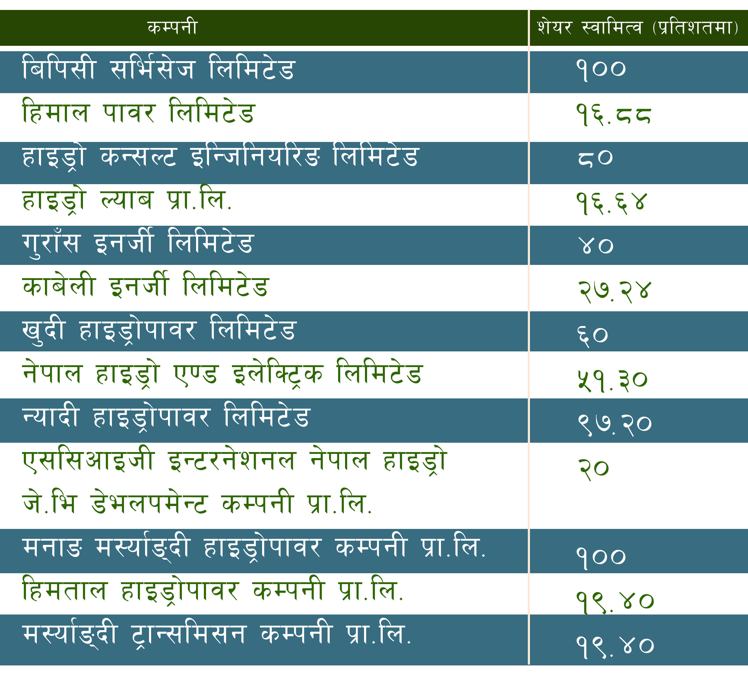 बिपिसीकाे सेयर स्वामित्व रहेका कम्पनी