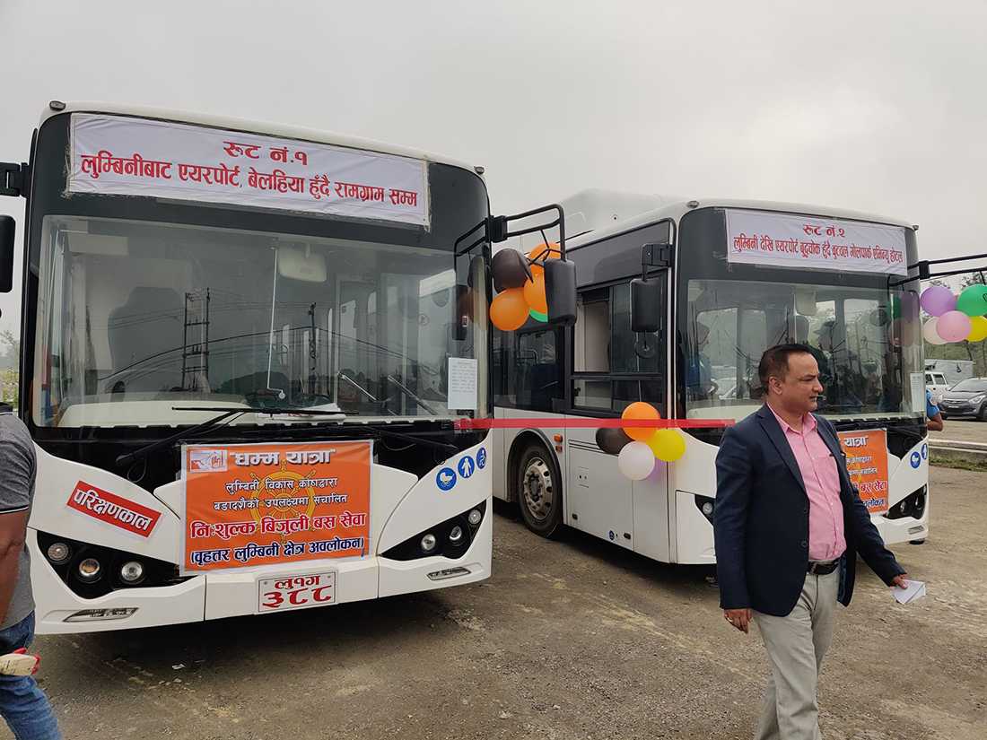काठमाडौं । लामो समयदेखि लुम्बिनीमा थन्किएको लुम्बिनी विकास कोषको बिजुली बस आज (बिहीबार) देखि सञ्चालनमा आएका छन् । दशैको अवसर पारेर कोषले आजदेखि ५ वटा विद्युतीय गाडी सञ्चालनमा ल्याएको हो ।