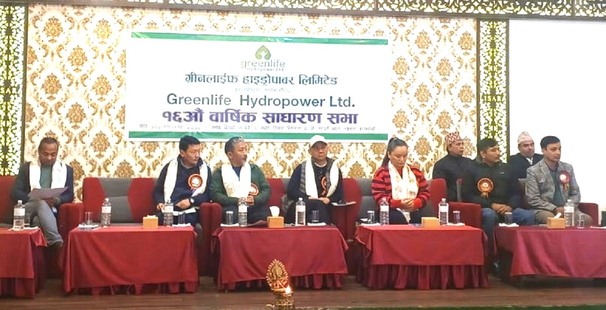 काठमाडौँ । ग्रीनलाइफ हाइड्रोपावर लिमिटेडको १६औँ वार्षिक साधारण सभाले ५ सदस्यीय सञ्चालक समिति निर्विरोध निर्वाचित गरेको छ । नयाँ सञ्चालक समितिको निर्वाचनका लागि कम्पनीले अघि बढाएको निर्वाचनको उम्मेदवारी प्रक्रियामा कुनै पनि पदमा दोस्रो प्रतिस्पर्धीको उम्मेदवारी नपरेपछि सञ्चालक समिति निर्विरोध निर्वाचित भएको हो । भगवतीबहालस्थित लिसारा रिसेप्सनमा सोमबार सम्पन्न साधारण सभामा निर्वाचित नयाँ सञ्चालक समितिको घोषणा गरिएको हो । जसअनुसार केसाङ डिकी लामा (महिला), तेन्जिन जम्पे लामा, छेतेन वाङ्गेल खाङ्कर लामा र बाबुराम खड्का (स्वतन्त्र विज्ञ) सञ्चालक निर्वाचित भएका छन् ।