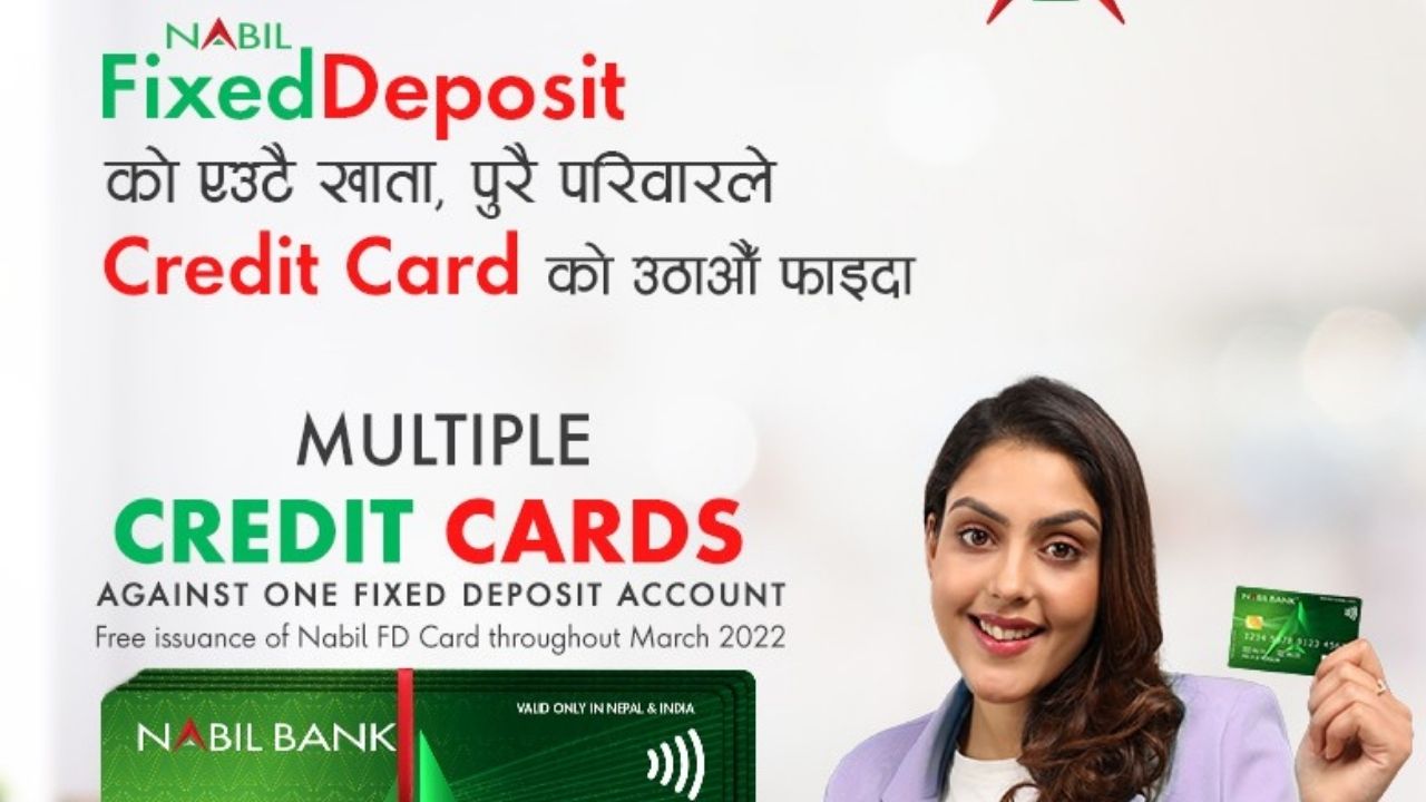 काठमाडौं । नबिल बैंकले क्रेडिट कार्ड अन्तर्गत नबिल एफडी कार्ड (नबिल फिक्सड डिपोजिट कार्ड) योजना सुरु गरेको छ । बैंकले अन्तर्राष्ट्रिय नारी दिवसको अवसर पारी मंगलबारबाट यो योजनाको सुरुवात गरेको हो ।