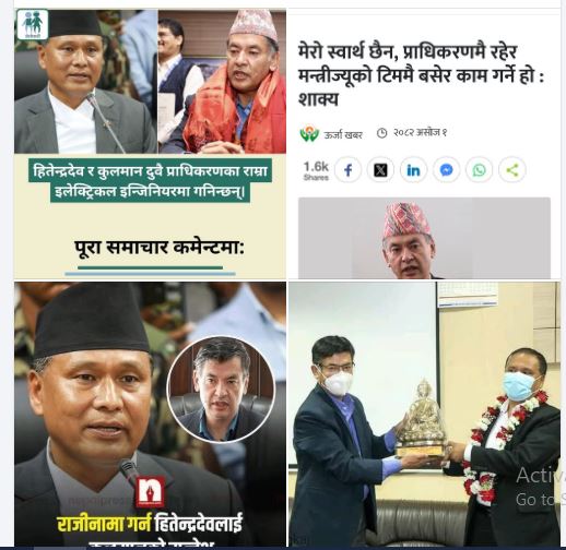 मन्त्री र कार्यकारी निर्देशकबीच सहकार्य जरुरी रहेको भन्दै प्राधिकरण उत्पादन निर्देशनालय अन्तर्गतको निर्माण सहायता महाशाखा प्रमुख शिवराम केसीले फेसबुकमा लेखेका छन् – हामी नेविप्रा कर्मचारीहरू दुवैलाई मिलेर कार्य गर्न अनुरोध गर्दछौँ । कुलमान सरले जेनजी पुस्ताको आन्दोलनमा टेकेर अबदेखि भ्रष्टचार रोक्ने प्रतिबद्धता जनाउनु भएको छ । पहिल्यैदेखि जागिरको दौरानमा समेत भ्रष्टचार नगरेका हितेन्द्रदेव शाक्य सरको फ्युजनबाट नेविप्राले अझै प्रगति गर्ने छ भन्ने हामी सबैले विश्वास लिएका छौँ । सुरुदेखि नै कुलमान सर व्यवस्थापनमा अब्बल सेलिब्रेटी हुन् भने हितेन्द्रदेव शाक्य प्राविधिक विशेषज्ञतामा अब्बल हुन् । दुवै संस्थाका लागि आवश्यक मान्छे हुन् । कुलमान सर आज नीति बनाउने ठाउँमा हुनुहुन्छ । राम्रो नीति बनाउनू, प्राधिकरणको हितमा कार्यन्वयन हितेन्द्र सरले जसरी पनि गर्नुपर्छ । प्रतिशोध साँधेर अगाडि बढ्दा जेनजीप्रतिको अपमान हुन्छ । देश हामी सबैले मिलेर बनाउने हो ।