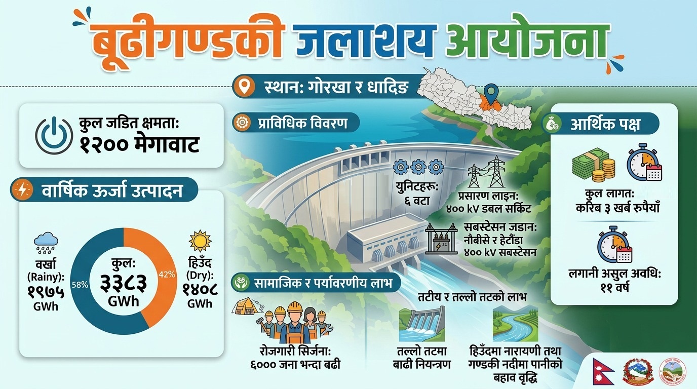 बूढीगण्डकीलाई ‘बहुउद्देश्यीय’मा नराखिए पनि यसबाट प्रशस्त बहुआयामिक लाभ हुने देखिन्छ । नेपालमा नदी प्रवाहमा आधारित (आरओआर) आयोजनाको बाहुल्यता रहँदा हिउँदको ऊर्जा माग र आपूर्तिबीच असन्तुलन बढेको छ । भारतबाट आयात गरेर हिउँद र उच्च माग हुने समयमा विद्युत् आपूर्तिमा सन्तुलन कायम गर्नुपर्ने अवस्था छ ।